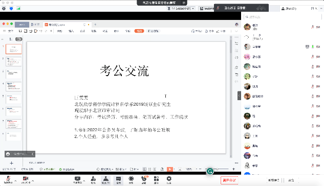 为进一步增加支部学生党员对公务员考试的了解,解决同学们在职业选择以及在公务员备考中的诸多困惑,近日,计算科学系师生联合支部邀请数学学院2019级硕士研究生巨雯雯和肖昕两位优秀校友进行了“研途相伴,勇往‘职’前”的考公经验分享交流会,本次交流会面向学院全体学生开展。