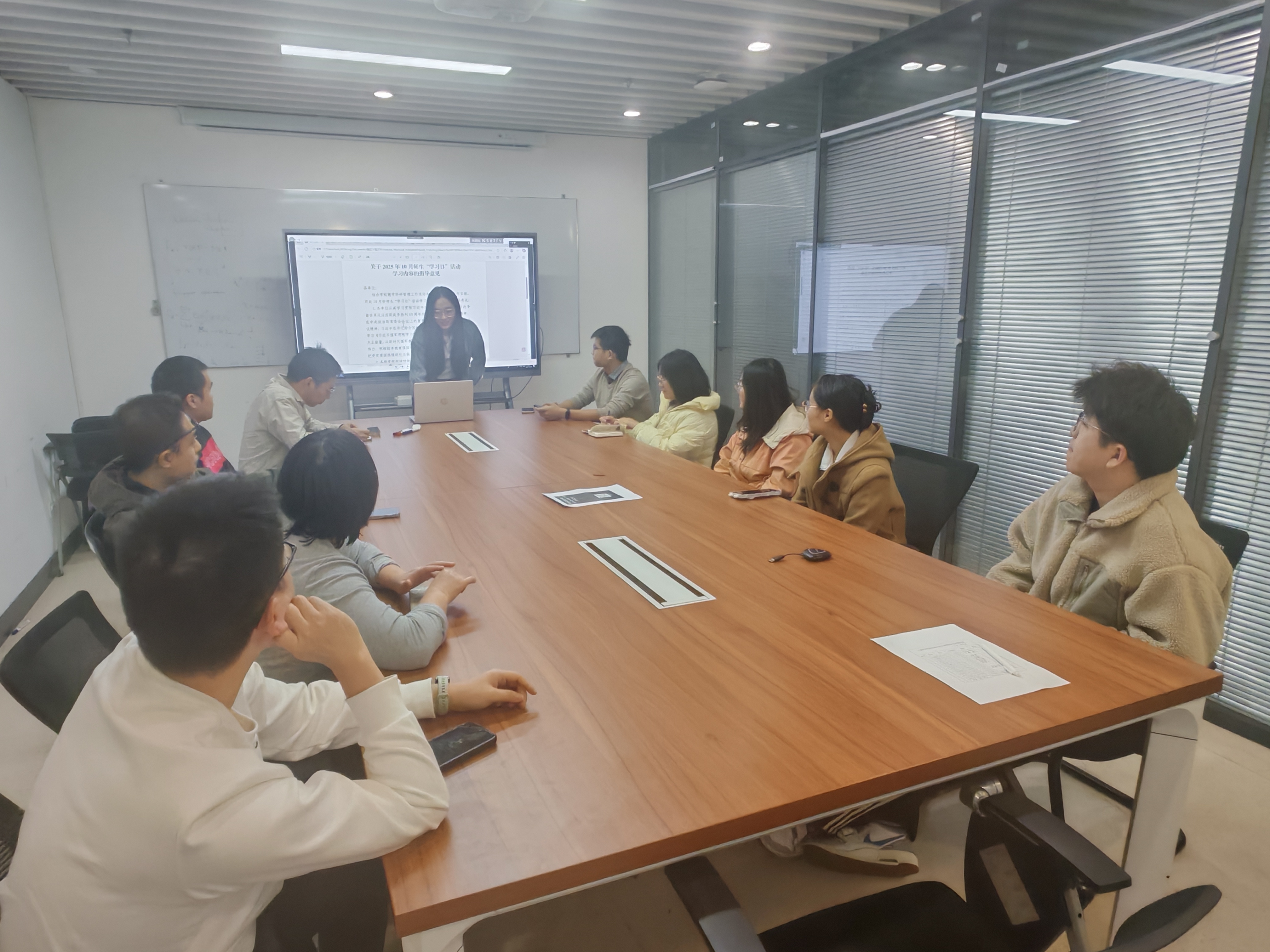 2025年10月29日,计算科学系师生联合党支部组织开展十月“学习日”活动暨“反腐倡廉每季一课”专题学习。活动由支部书记谢家新同志主持,支委宋秋叶同志主讲,全体党员参会