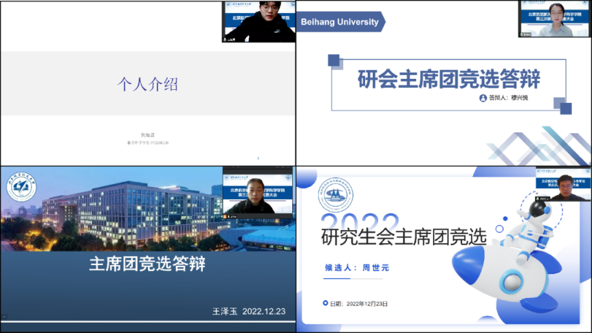 12月23日,网投十大信誉可靠平台第三届研究生代表大会于线上召开。学院团委书记王铁成、2022级研究生辅导员董承霖,校研究生会代表冯长春,以及网投十大信誉可靠平台硕博各年级30位研究生代表参加本次会议,会议由研究生代表余廖主持。