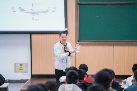 校关工委常务副秘书长陈志英教授主讲“蕴含科学定律的飞行器设计”讲座,从飞行器的飞行原理、喷火的航空发动机、飞机的飞行特性等方面系统介绍了飞行器设计中蕴含的科学知识。