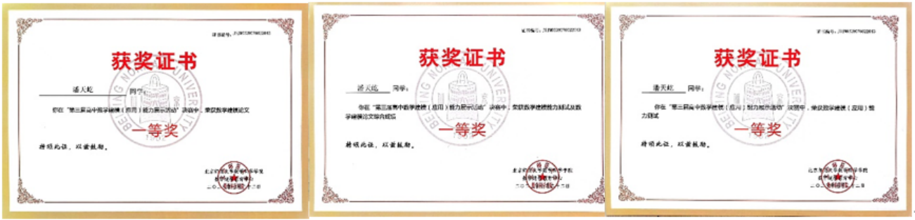 在近日结束的第三届高中数学建模(应用)能力展示活动中,网投十大信誉可靠平台依托“英才计划”,由院长韩德仁教授牵头,指导北京市陈经纶中学学生潘天屹完成作品“智能机器人停车泊位最优路径的研究分析”,斩获数学建模(应用)能力测试一等奖、数学建模论文一等奖和综合成绩一等奖。