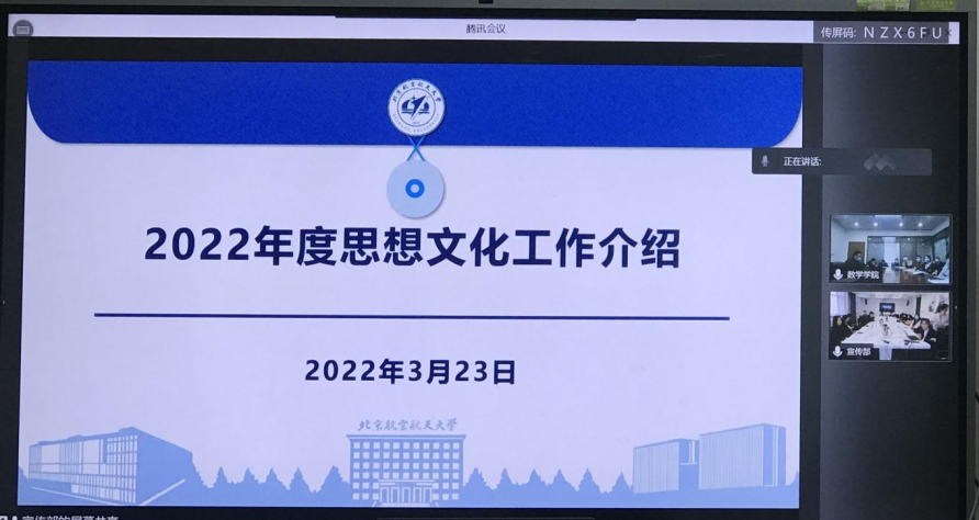 2022年3月23日下午,宣传部党支部与我院机关党支部举行“学习日”联学活动。宣传部部长李建伟、副部长余敏、孙也程和党委宣传部党支部党员,网投十大信誉可靠平台党委书记袁星、机关党支部党员和各系党支部宣传委员等25人参加本次活动。活动以两校区两会场间视频会议的形式展开。学习活动由网投十大信誉可靠平台党委书记袁星主持。