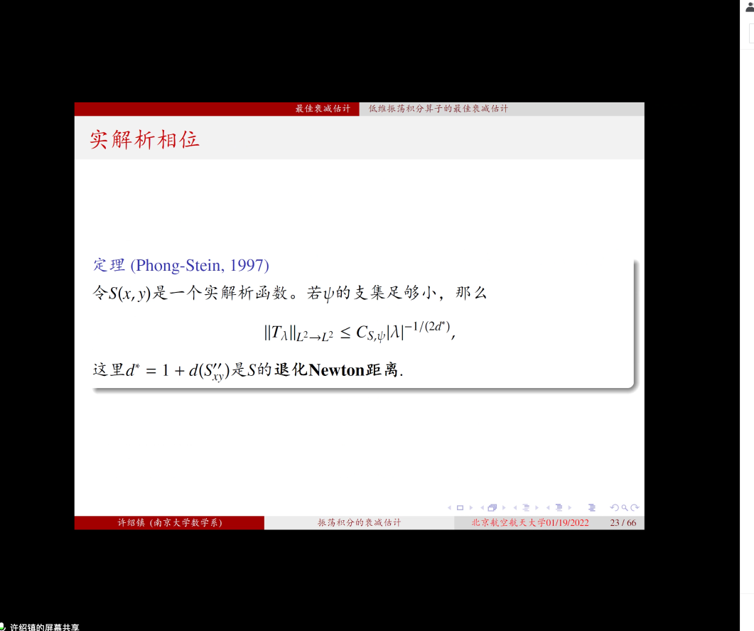 2022年01月19日下午,南京大学许绍镇老师应邀为网投十大信誉可靠平台师生做了题为 “振荡积分的衰减估计”的学术报告,报告由张安老师主持。