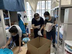 6月底,辅导员在与毕业年级学生充分沟通的前提下,确定了每一个毕业年级学生的行李打包要求,制定“一人一策”的行李打包方案,分类建立寄送、暂存、自提台账,做好充分准备。