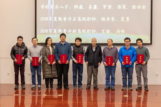 接下来,数学学院党委书记袁星宣读了2018年度在人才队伍、教学、科研和党建等工作中获得各级荣誉奖励的教师名单,并邀请参会嘉宾为获奖代表颁奖。数学学院的教师承担着全校所有数学类课程的教学工作,他们在三尺讲台上辛勤地传道授业,无私地奉献着青春芳华,为北航的人才培养奠定扎实的理科基础。在教学方面,本年度共获得两项国家级奖励和三十余项校级奖励;在科研工作方面,数学学院涌现了一批敢想敢干的年轻教师,在自然基金申报等科研工作中取得了很大的突破。获奖教师代表夏勇老师发表感言。