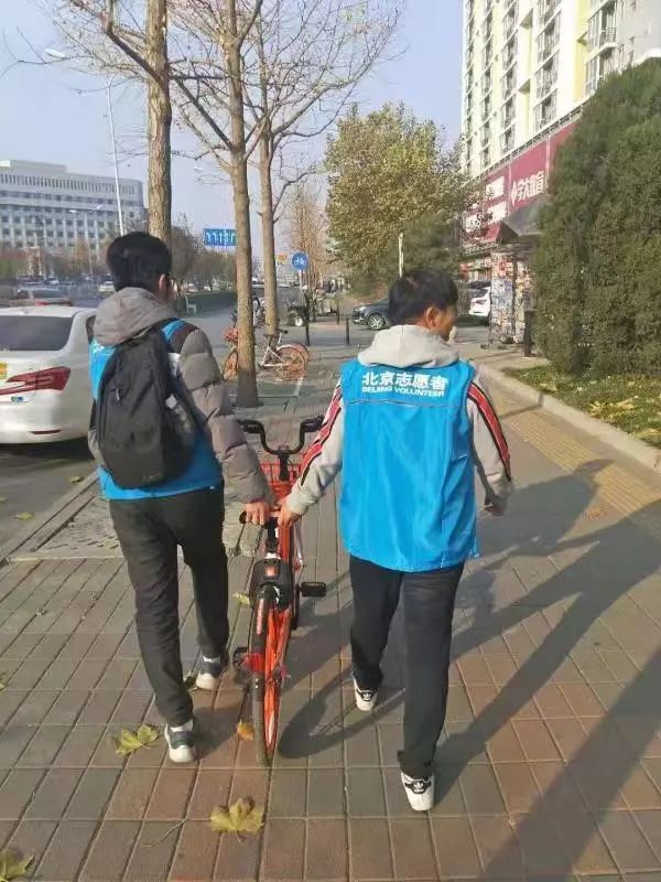 在街道委人员的指导下,同学们快速地熟悉了志愿服务的流程,并积极投入到志愿服务中。实践中,北航志愿者们注重细节,尽职尽责,充分展示了北京青年志愿者良好的精神面貌。志愿者的优秀表现使街道更加的整洁,同时,市民使用共享单车更加方便。身着蓝色马甲的志愿者们,在用自己的实际行动,向群众阐释文明出行的理念。