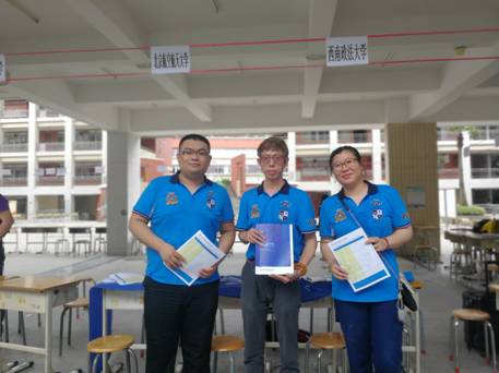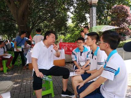 | 校友胡勇(中)帮助招生老师在广东实验中学做招生宣传 |