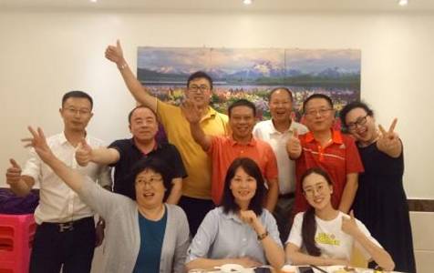| 孙欣夫妇(右一、右二)和招生老师在南海中学合影 |