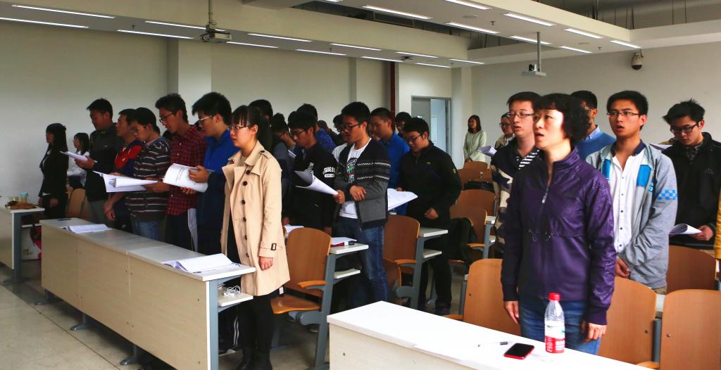 最后,全体学员起立奏唱国际歌,网投十大信誉可靠平台数学与系统科学学院学生党校开学典礼暨第一堂党课在雄浑激昂的国际歌中圆满的落下了帷幕。