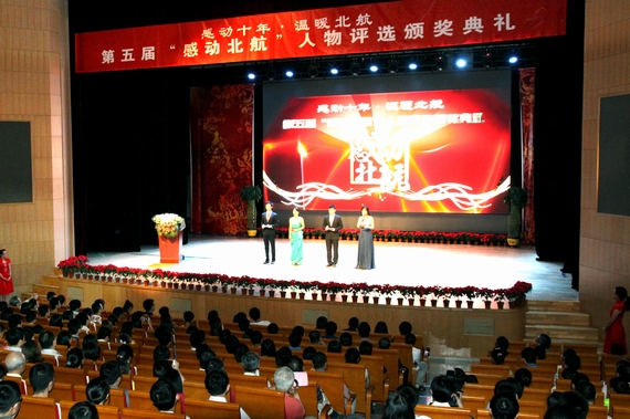 2015年6月11日晚上7点,第五届感动北航获奖人物颁奖典礼在晨兴音乐厅隆重举行。“感动北航”评选已经走到了第十个年头,感动十年,温暖北航。童声合唱《让世界充满爱》拉开了典礼的序幕,典礼分成创新坚持、自强厚德、敬业奉献三个篇章。