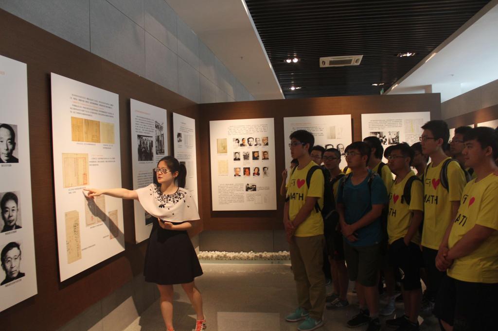 在参观图书馆时,冯雷馆长亲自担任讲解员向同学们具体介绍了墙上悬挂的两幅著名数学家王元先生的书法作品,用楷体书写的《蜀道难》提醒后辈做学问一定要脚踏实地,用行书书写的《桃花源记》则告诫我们做学问要脱俗朴实,不被功名利禄蒙蔽。在参观华罗庚先生纪念室时,同学们都为华老自学成才、爱国奉献的精神及为发展和振兴中国数学事业而鞠躬尽瘁的事迹深受感动,更加深刻地意识到自己作为华罗庚班的一员身上肩负的责任与使命。