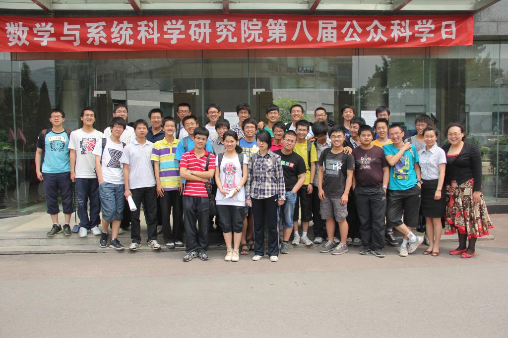 2012年5月19日,北航10级、11级华罗庚班应中国科学院数学与系统科学研究院的邀请,参加了研究院主办的公众科学日活动。在活动中,华罗庚班的学生们饶有兴趣的听取了多场报告,报告内容涉及理论数学、计算数学、数学与哲学、数学与云计算、数学与地质灾害、数学与系统生物学等主题报告。首先,著名的数学家、华罗庚数学奖得主王元院士用通俗易懂的语言,为在座的观众介绍“哥德巴赫猜想”,并且用简洁的语言介绍了“哥德巴赫猜想”中的一些推论和命题的证明。之后研究院最年轻的院士席南华院士为学生做了“认识数学”的主题报告。在两场报告之后,研究院专门设计安排了三场数学与其他交叉学科的主题报告,分别是金雅芬主任的“未来十年云计算讲给社会发展带来革命性的变化”的报告,刘勇副研究员的“生命的乐章——后基因组时代的系统生物学”的报告,以及刘伟助理研究员的“大规模科学计算与地质灾害的模拟”的报告。报告中,在听观众兴趣浓厚,尤其是提问互动环节,华罗庚班学生思维尤其活跃,提出不少问题。 活动之后学生们仍然激动地聊着此次活动的内容。这次公众科学日活动再一次开拓了华罗庚班学生的视野,也为学生与大师级人物交流提供了宝贵的机会。整个活动以学生们在研究院思源楼前合影结束。