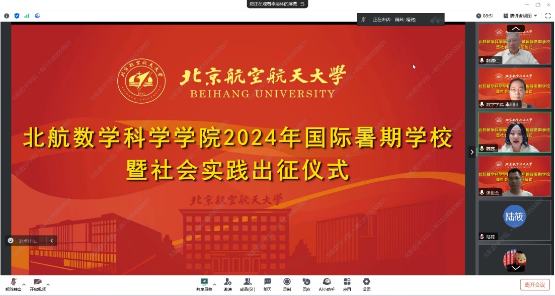 暑期学校带队教师代表李田田、程乾分别介绍了香港理工大学暑期学校和俄罗斯新西伯利亚国立大学暑期学校的整体安排,就出国出境注意事项进行了提醒,并强化了行前安全教育。数学与应用数学(强基计划)2022级学生王皓田、2023级学生王誉翔作为暑期学校学生代表发言,他们表示将严格遵守出行纪律,认真完成课程学习,保证暑期学校时间充实而有意义。