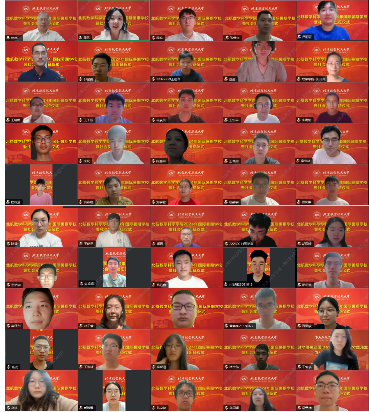 7月19日晚,网投十大信誉可靠平台2024年国际暑期学校暨社会实践出征仪式于线上会议平台进行。学院院长韩德仁、党委副书记魏茜,暑期学校带队教师代表张世金、李田田、陆筱,社会实践队指导教师代表程乾,国际暑期学校和社会实践队学生代表等近60人参加仪式。本次出征仪式由魏茜主持。