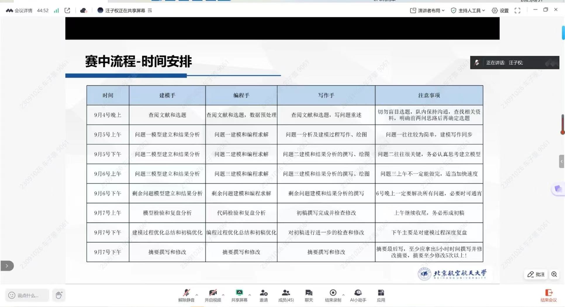 同时,为提升北航全体学生数学建模能力、提升北航学生的竞赛竞争力,赛前,数模竞赛指导团队的老师们为参赛学生进行了细致的培训。